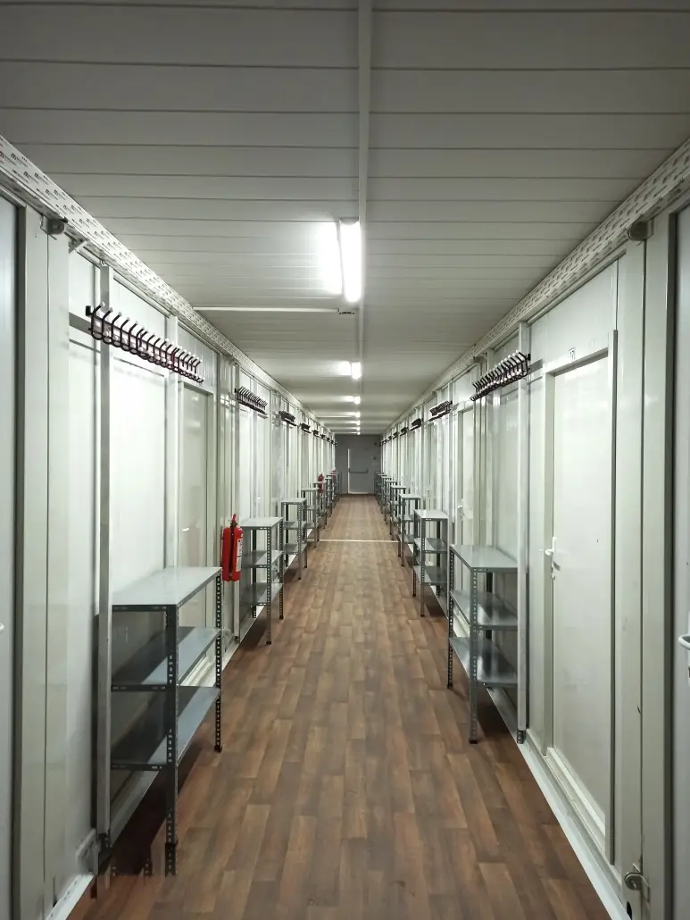 A hő- és hangszigeteléssel ellátott konténerek négy évszakos használatra alkalmasak. A belső térfogat testre szabható, hogy megfeleljen az alapvető igényeknek, mint például az ágyhelyiség, konyhasarok, WC és zuhanyzó.
