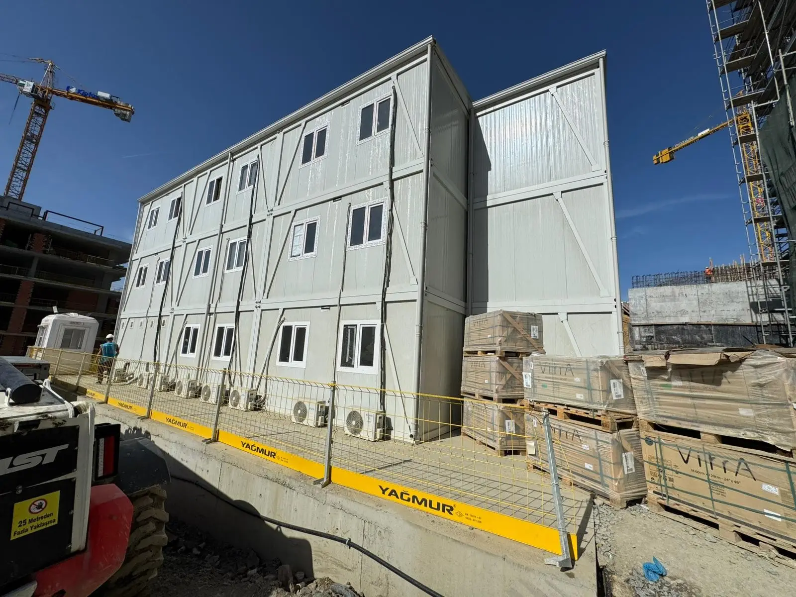 A Kent Etiler Project nagy kapacitású mobilizációs táborként hívja fel magára a figyelmet, amely megoldást kínál a nagyszabású építkezések igényeire, és rövid idő alatt jön létre. Az összesen 4500 m²-es területet lefedő projekt keretében a Pramo Prefabricated szakértelmével mindössze 45 nap alatt 2 négyemeletes munkáskollégiumi épületet és 1 háromemeletes irodai konténerépületet gyártottak le és szereltek össze, és tettek használatra kész állapotba.
